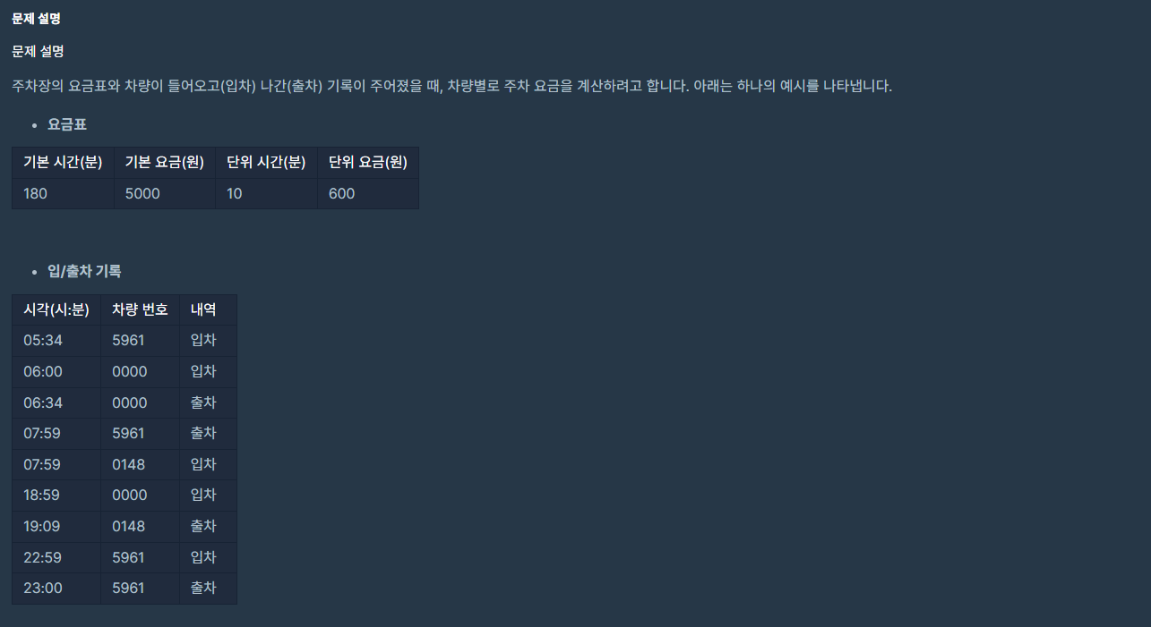 코딩테스트 연습 - 주차 요금 계산