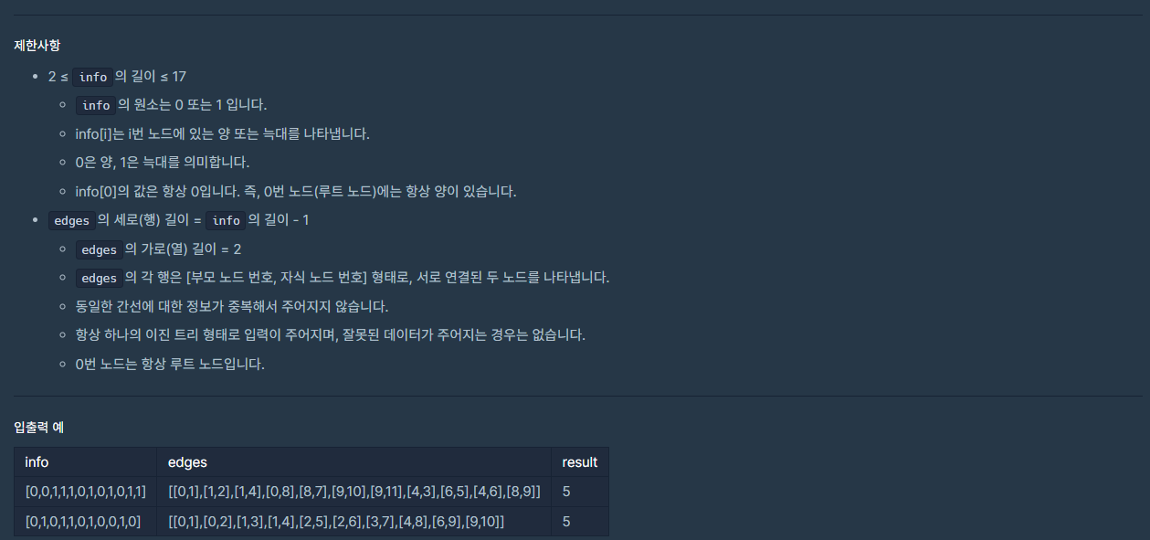 [0,0,1,1,1,0,1,0,1,0,1,1] [[0,1],[1,2],[1,4],[0,8],[8,7],[9,10],[9,11],[4,3],[6,5],[4,6],[8,9]] 5 [0,1,0,1,1,0,1,0,0,1,0] [[0,1],[0,2],[1,3],[1,4],[2,5],[2,6],[3,7],[4,8],[6,9],[9,10]] 5