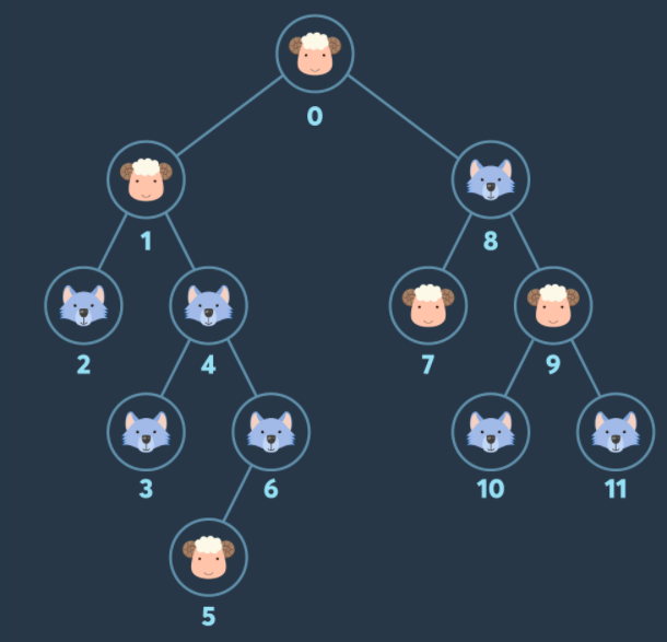 public void dfs(int cur,int sheep,int wolf,List<Integer> curPlan){