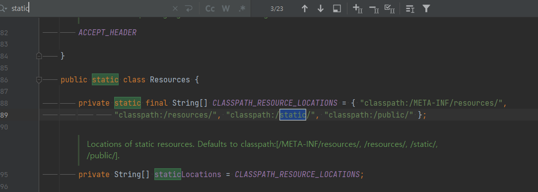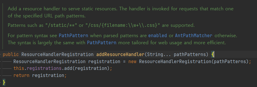 여기서 특정 uri 패턴으로 정적 자원관리를 할 수 있게 자동으로 경로를 추가해줬다.