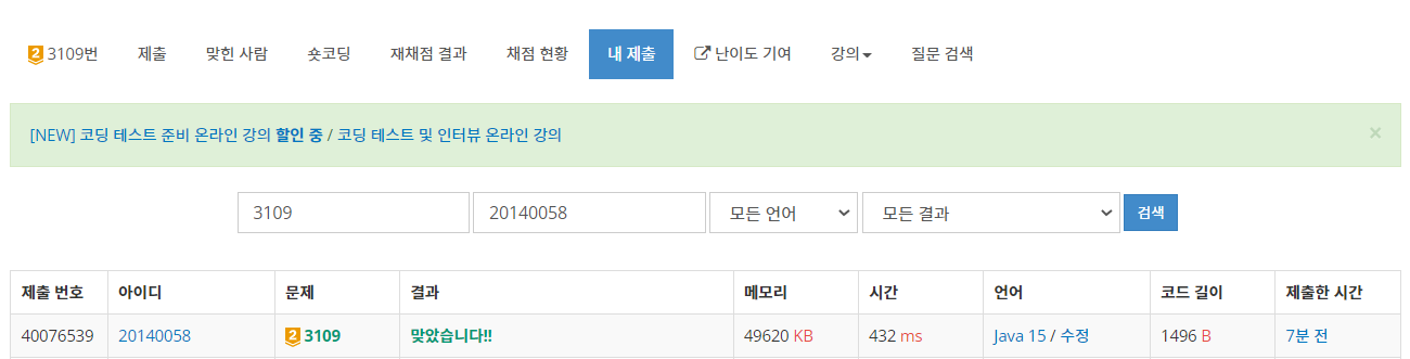 | [BOJ] 백준 [14442] 벽 부수고 이동하기 2JAVA (0) | 2022.03.09 |