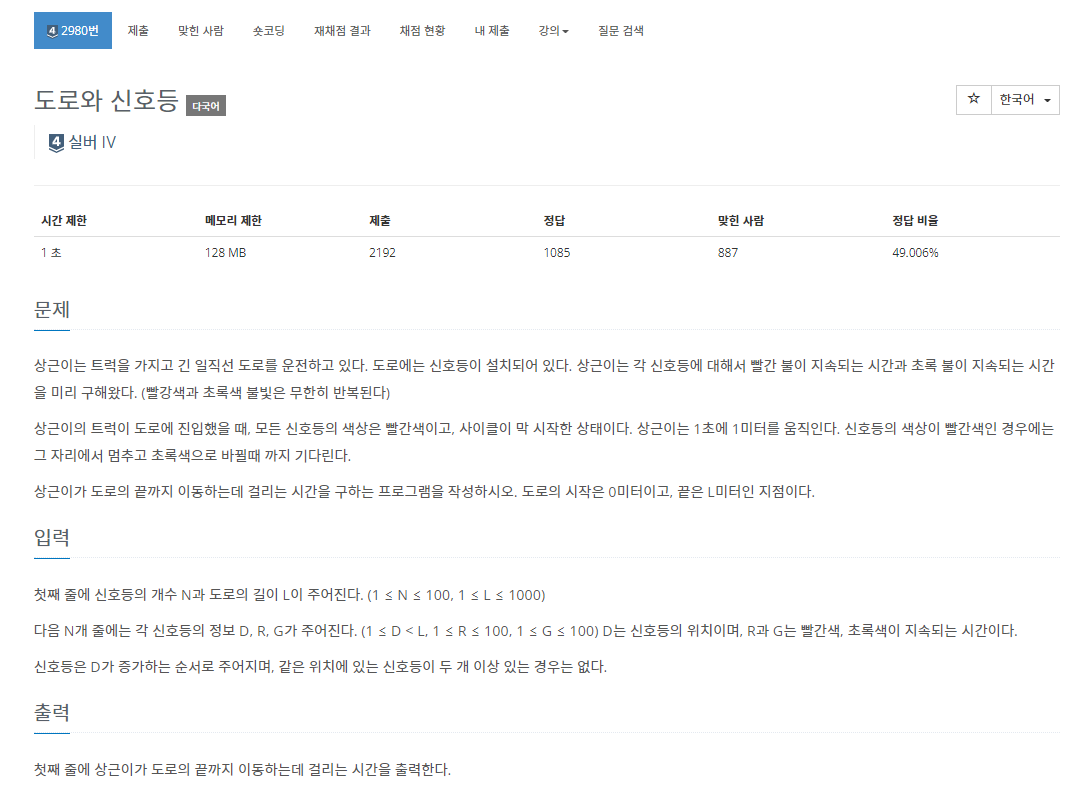 2980번: 도로와 신호등