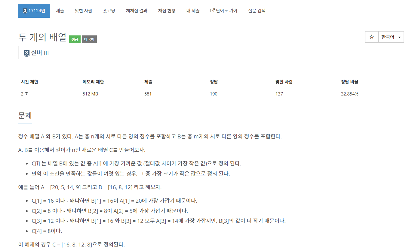 17124번: 두 개의 배열