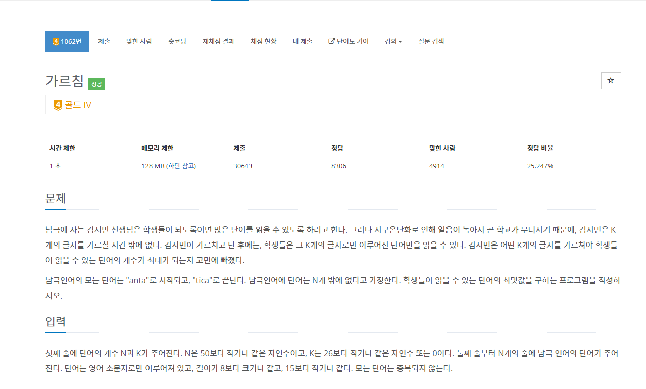 https://www.acmicpc.net/problem/1062