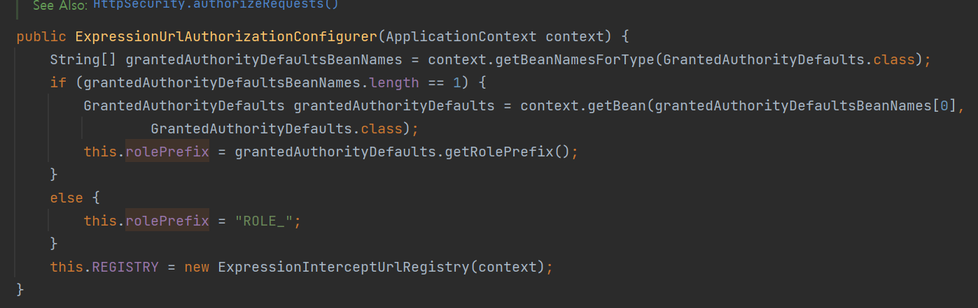 여기서 ROLE_ 이라는 prefix를 자동으로 붙여준다. 별도의 설정을 하지 않는 이상