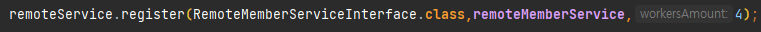 Redisson Remote Service 를 이용하기 위해선 Server 와 Client 가 같이 사용할 수 있는 인터페이스가 필요한데 Client쪽에서는 이 RemoteMemberServiceInterface 를 호출하는 방식으로 사용할 것이고 , Server 쪽에서는 RedissonRemoteService 에 이 인터페이스와 인터페이스를 구현한 서비스 클래스를 등록할 것이다.