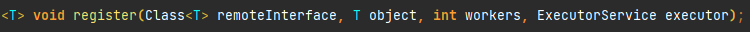 두 번째 특이사항은 RRemoteService 에다가 등록할 RemoteService 를 등록하는 과정인데 기본 값은 요청이 들어올 때 하나의 스레드로만 처리하게 하는 옵션을 가지고 있다.