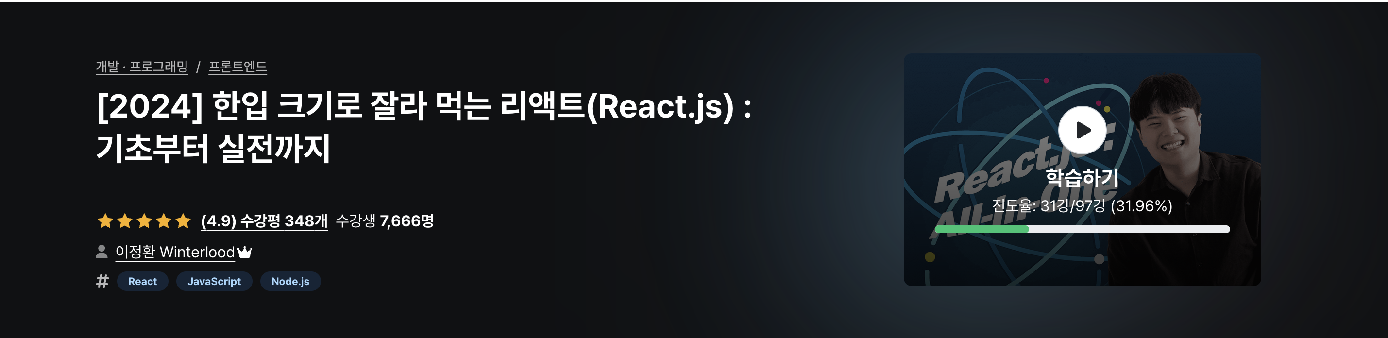 이전에 한 입 크기로 잘라먹는 리액트 강의 쿠폰을 받아 샀었다가 볼 일이 있겠거니 하고 묻어뒀던 강의 ..