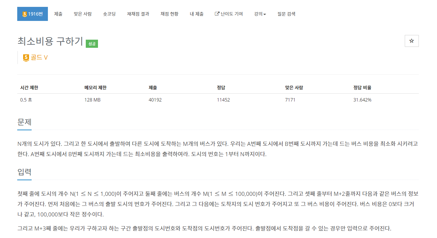 https://www.acmicpc.net/problem/1916
