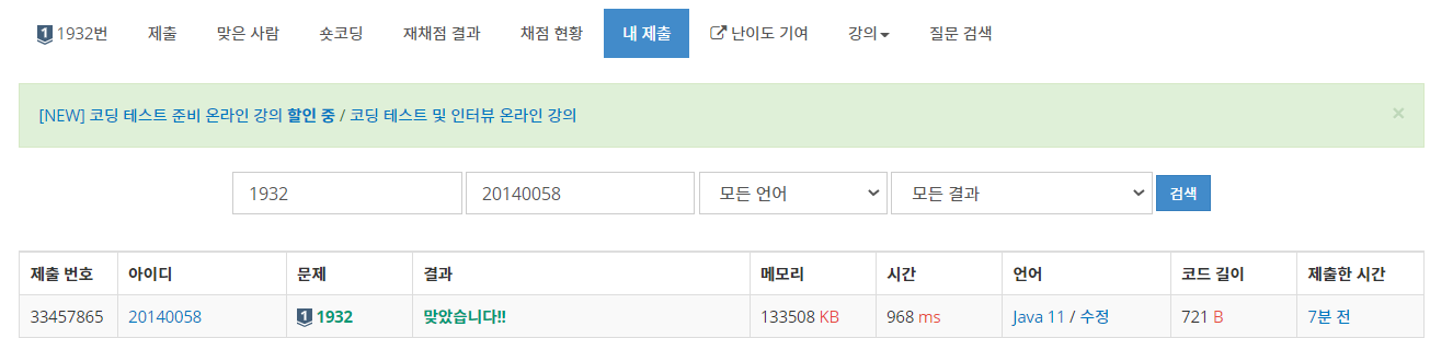 | [BOJ] 백준 [2293] 동전 1 JAVA (0) | 2021.09.18 |