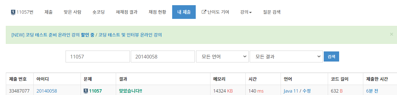 | [BOJ] 백준 [2293] 동전 1 JAVA (0) | 2021.09.18 |
