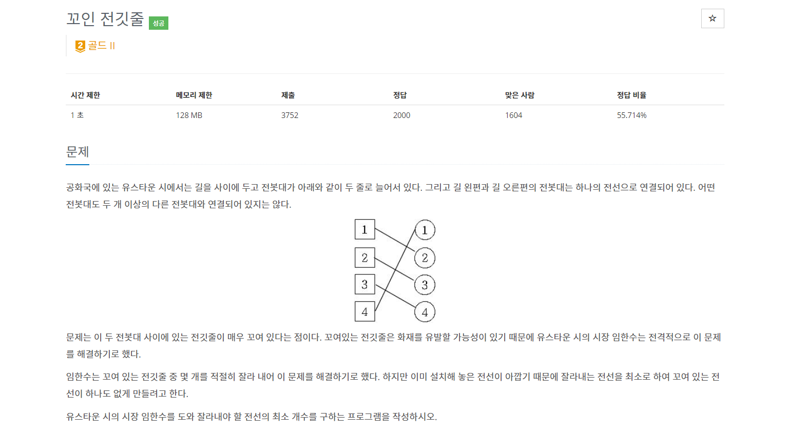 즉 , 반대쪽의 전봇대의 번호가 증가하는 수열의 형태면 꼬이지 않으므로 LIS 알고리즘을 통해 해결해야한다.