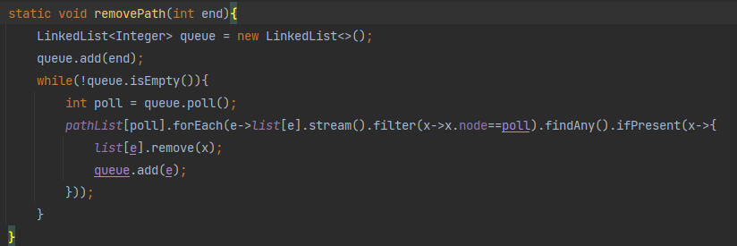 pathList[poll].forEach(e->list[e].stream().filter(x->x.node==poll).findAny().ifPresent(x->{