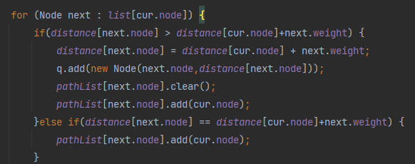 }else if(distance[next.node] == distance[cur.node]+next.weight) {
