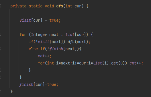 3이 호출한 dfs의 next(1) 부터 cur로 돌아올 때 까지 cnt를 늘려주면서