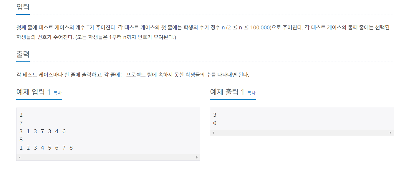 9466번: 텀 프로젝트