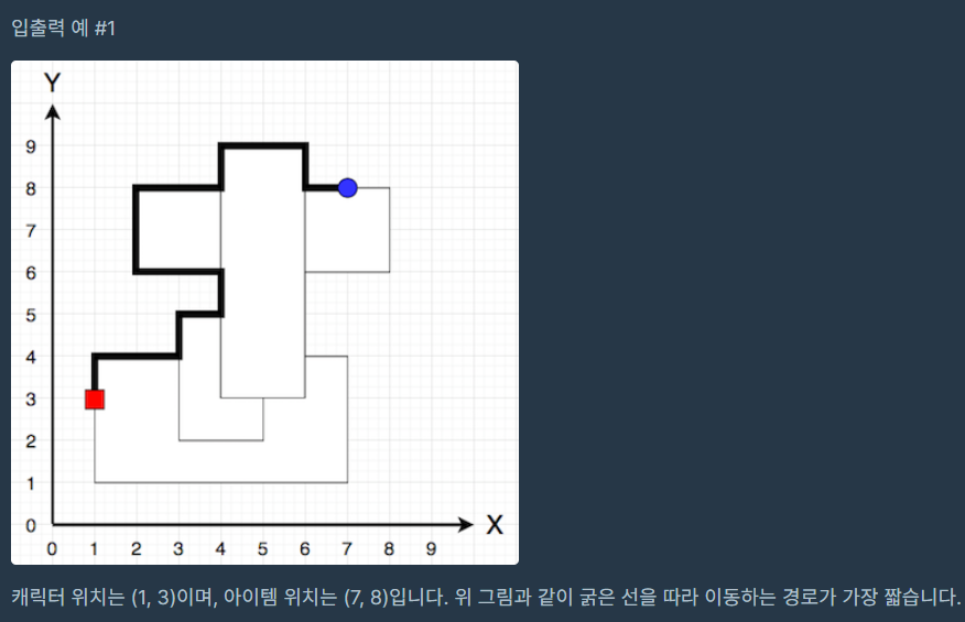 public int solution(int[][] rectangle, int characterX, int characterY, int itemX, int itemY) {