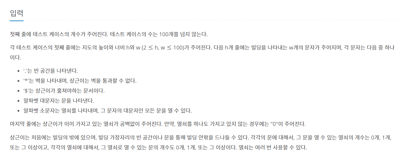 1. 3차원 visit[][][] 배열을 사용하여 열쇠를 먹을때 마다 visit[][][index++] 을 처리해줘서 열쇠 먹은시점이랑 열쇠를 안 먹은 시점이랑 분리 시키는 것.