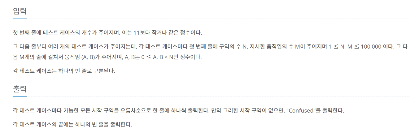 따라서 SCC 를 구한 후 , Indegree=0 인경우를 카운팅하여 2개 이상인 경우엔 예외로 처리하면 끝