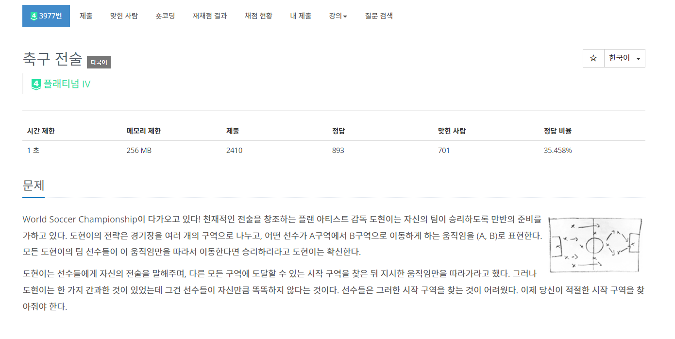 World Soccer Championship이 다가오고 있다! 천재적인 전술을 창조하는 플랜 아티스트 감독 도현이는 자신의 팀이 승리하도록 만반의 준비를 가하고 있다. 도현이의 전략은 경기장을 여러 개의 구역