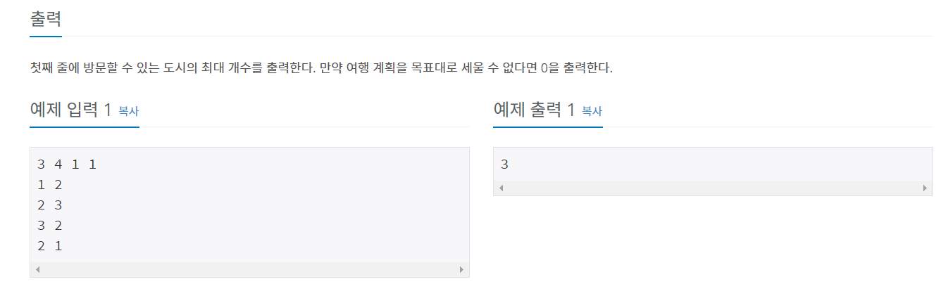 최대한 많이 여행하기 위해선 왔던곳을 경로만 있다면 몇번이든 돌아다녀서 최종적으로 얼마나 돌아다녔는지를 구해야한다.